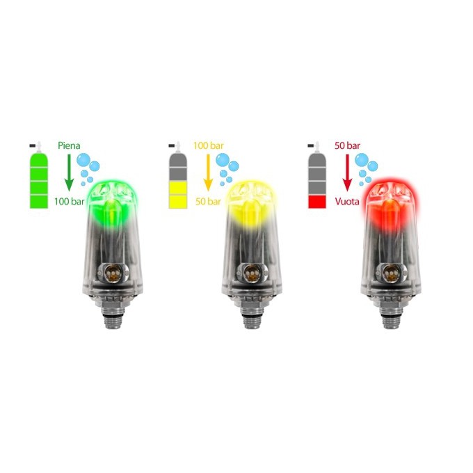 RATIO Transmiter (sonda ciśnienia) przesyła w czasie rzeczywistym informację o ciśnieniu butli do kompatybilnych komputerów nurkowych RATIO (iX3M / iX3M2 / iDive). Kolorowe wskazania LED oraz bezprzewodowa telemetria ułatwiają kontrolę gazu bez odrywania wzroku od otoczenia.