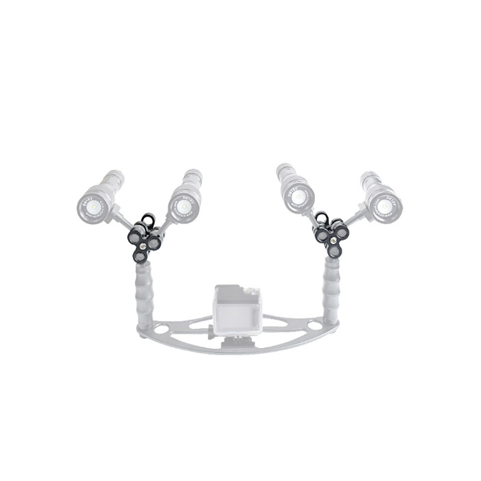 OrcaTorch ZJ14 to precyzyjny, aluminiowy zacisk kulowy z podwójnym gniazdem do mocowania ramion i akcesoriów fotograficznych. Jest częścią profesjonalnego systemu montażowego OrcaTorch, kompatybilnego z większością standardów 1" (25 mm). Idealny do łączenia ramion, uchwytów, głowic i lamp video w zestawach podwodnych.