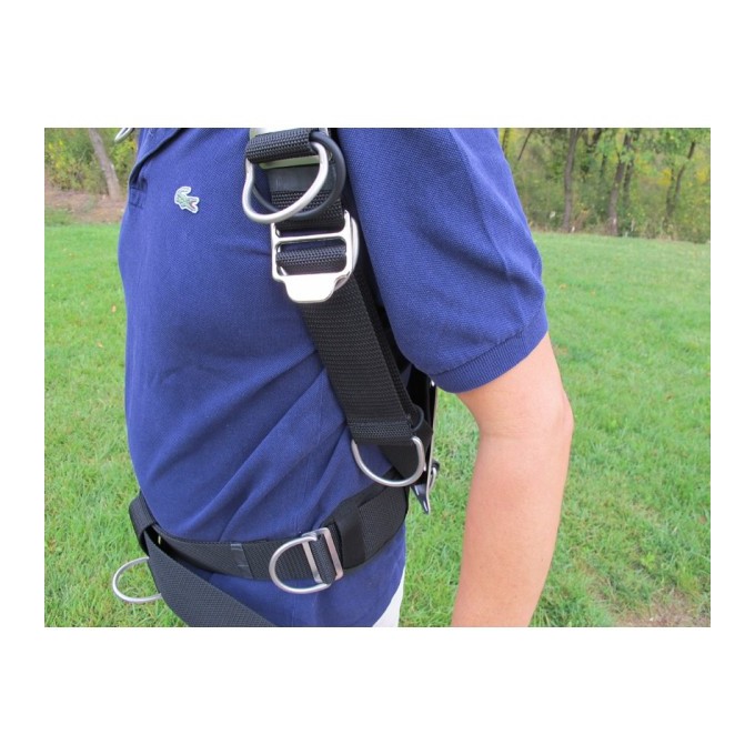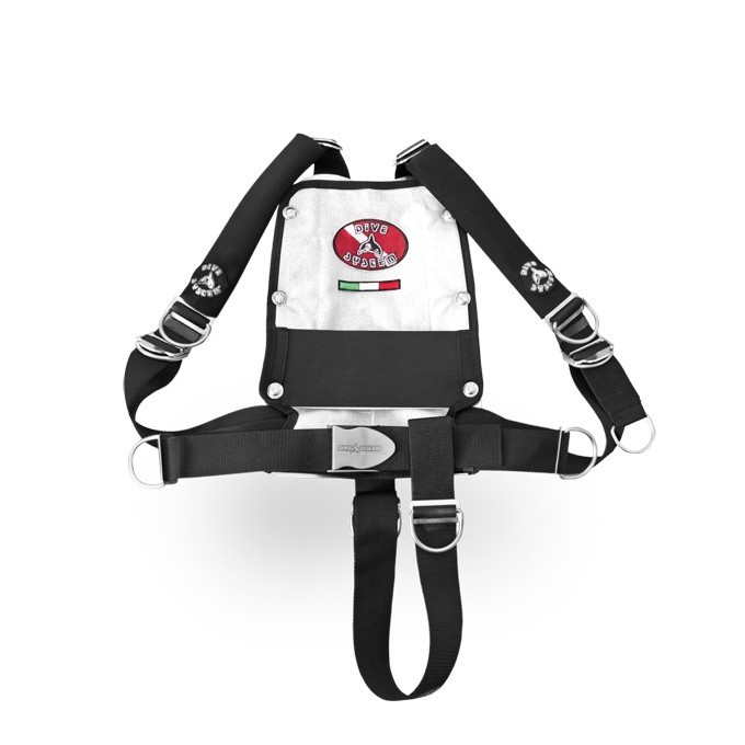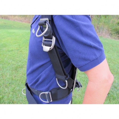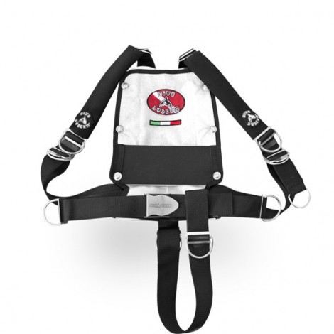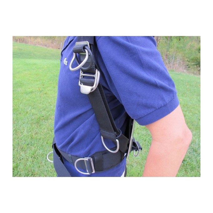 • Pasy ramienne z metalowymi d-ringami (ilość 5szt.) oraz metalową klamrą pasa brzusznego mocowane bezpośrednio do płyty zapewniają komfort i poczucie bezpieczeństwa użytkownika.