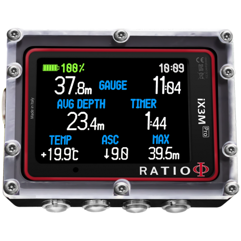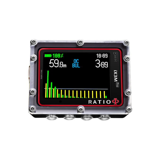 Komputer nurkowy Ratio iX3M Pro Easy – Powietrze/Nitrox, 2 gazy, ekran 2.8”, 300 m