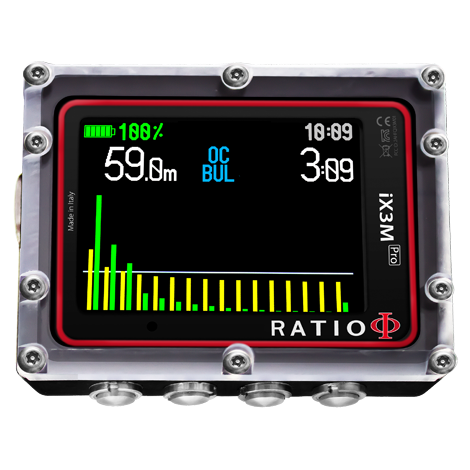 Ratio iX3M Pro Tech to komputer nurkowy klasy technicznej zaprojektowany dla wymagających nurków Trimix i CCR. Łączy pełną konfigurowalność, czytelny ekran 2.8”, dwa algorytmy dekompresyjne (Bühlmann ZHL-16B i VPM-B), oraz obsługę do 10 gazów. To urządzenie, które nie ogranicza – stworzone do nurkowań głębokich, wrakowych i CCR.