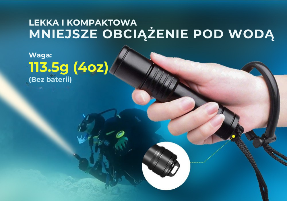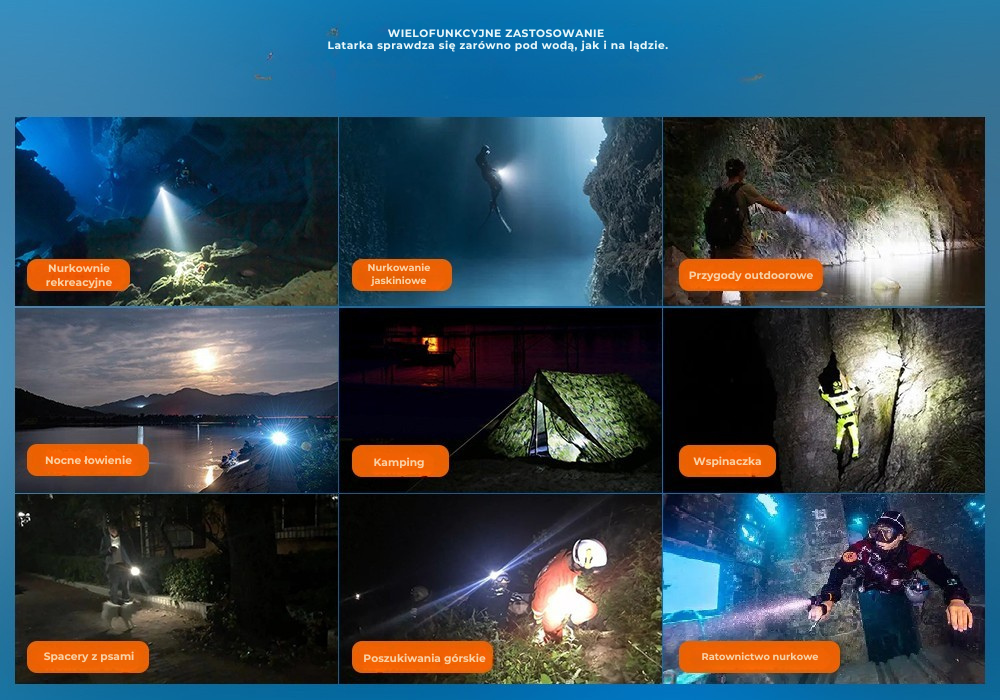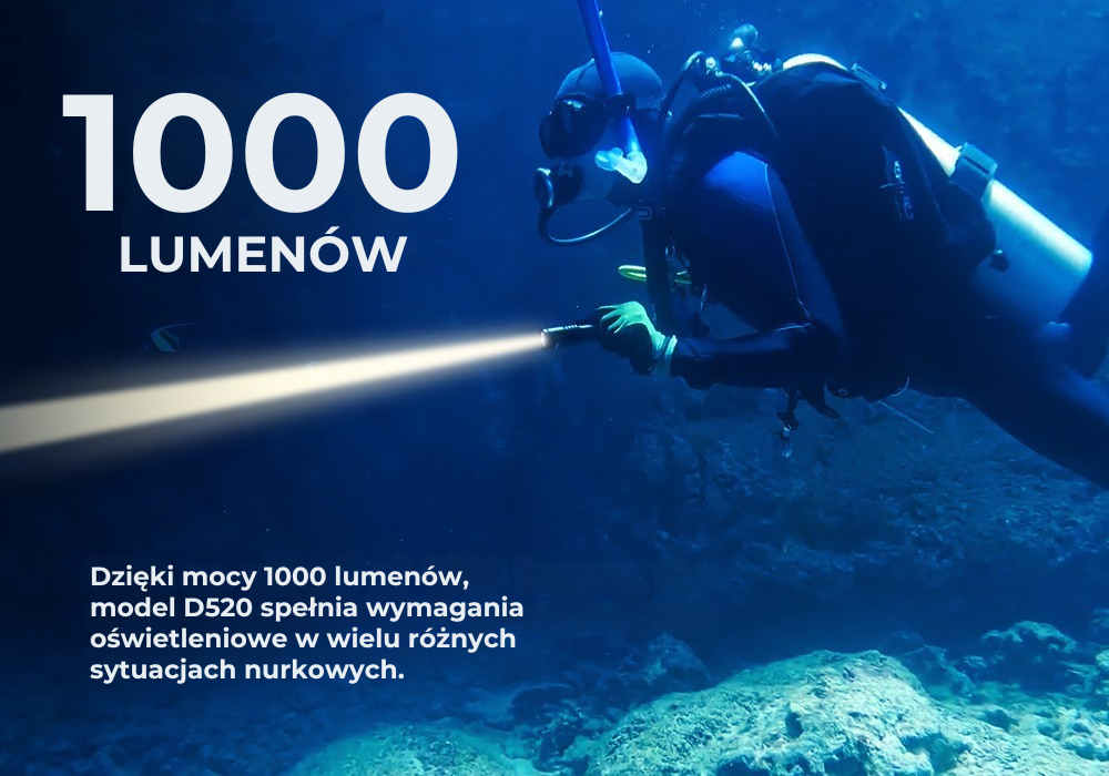 - 1000 lm – mocne, skupione światło do codziennych nurkowań
