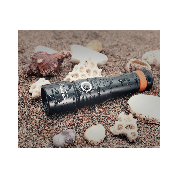 D710 to jedna z najpopularniejszych latarek OrcaTorch — mocna, solidna i bardzo wytrzymala. Oferuje idealne polaczenie mocy, ergonomii i kompaktowego rozmiaru. Sprawdza sie jako latarka glowna na nocne nurkowania, wraki i nurkowania rekreacyjne.