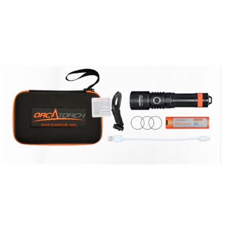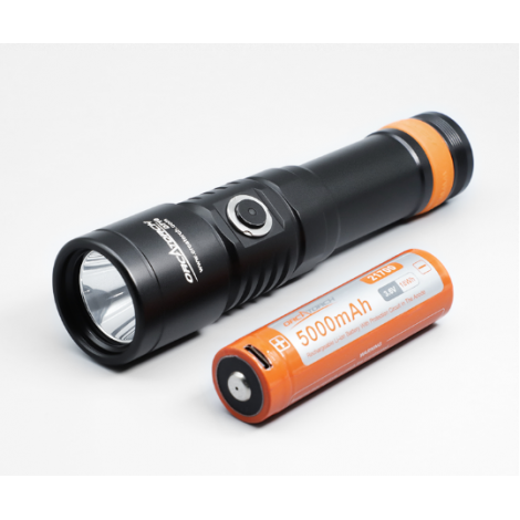 OrcaTorch D710 to mocna, kompaktowa i niezawodna latarka glowna 1700 lm z akumulatorem 21700 i waska wiazka 6°. Idealna do nocnych, wrakowych i rekreacyjnych nurkowan.