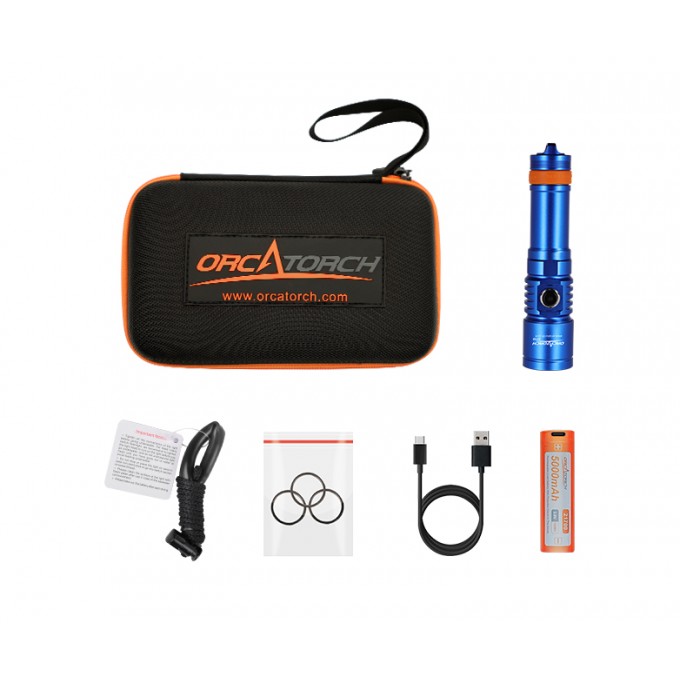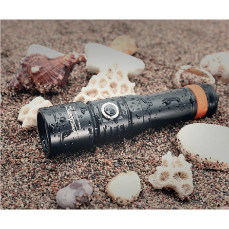 OrcaTorch D710 to mocna, kompaktowa i niezawodna latarka glowna 1700 lm z akumulatorem 21700 i waska wiazka 6°. Idealna do nocnych, wrakowych i rekreacyjnych nurkowan.