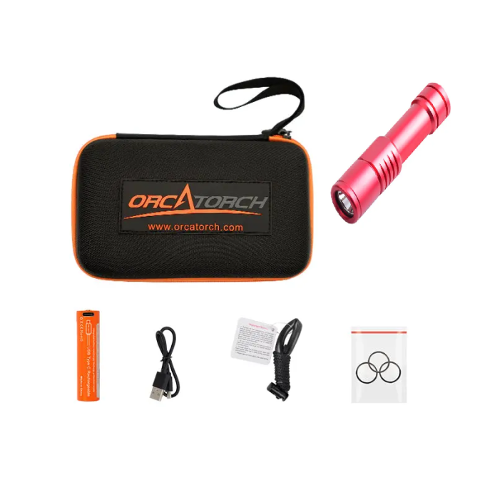 Latarka nurkowa OrcaTorch D520 Red – 1000 lm, akumulator 18650, mechaniczny włącznik, głębokość 150 m