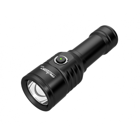 Latarka zasilana jest wydajnym akumulatorem 18650 (3400 mAh), zapewniając do 1 h 51 min świecenia światłem białym. Obudowa z aluminium A6061-T6, szkło hartowane z powłoką AR i wodoszczelność IPX8 / 150 m gwarantują trwałość i bezpieczeństwo pracy w każdych warunkach nurkowych.