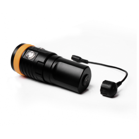 Latarka nurkowa foto OrcaTorch D900V – 2200 lm, szybkie ładowanie magnetyczne, akumulator kanister, głębokość 150 m.