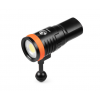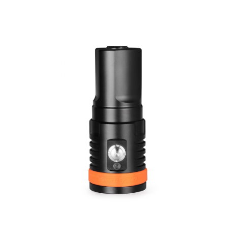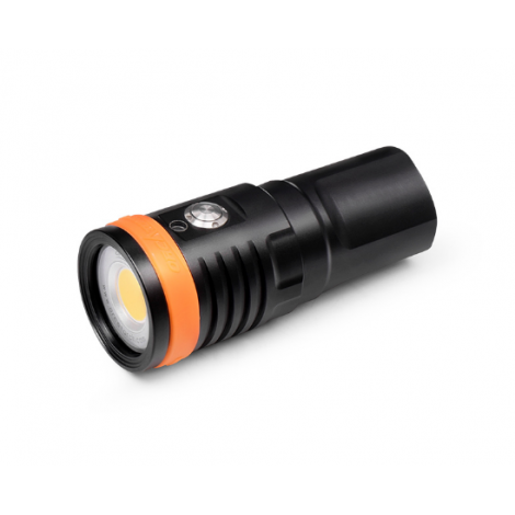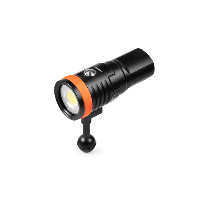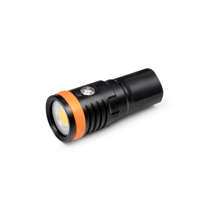 Latarka nurkowa foto OrcaTorch D910V to kompaktowa lampa wideo o mocy 5000 lm, zaprojektowana do równomiernego oświetlania kadrów pod wodą. Szeroki kąt 120° i neutralna temperatura 5700 K zapewniają miękkie, naturalne światło bez hot-spotu – idealne do ujęć szerokich, portretów i makro.