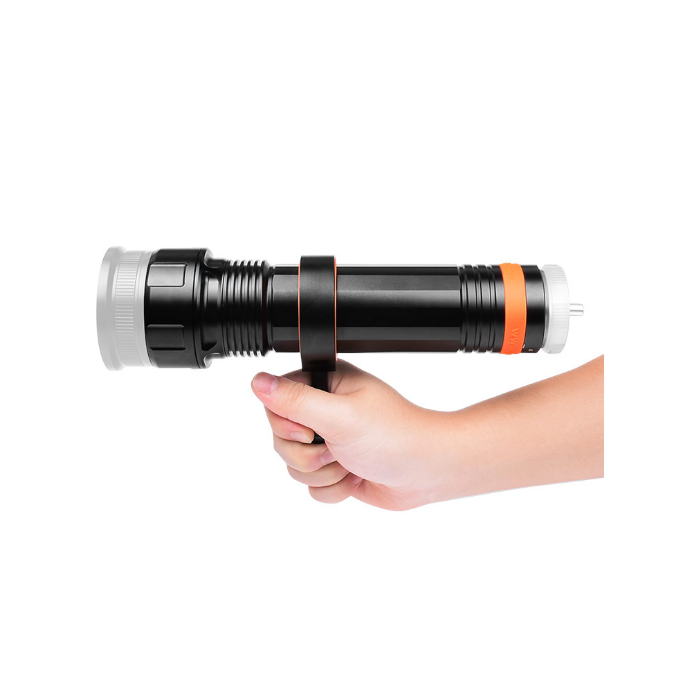 OrcaTorch D950V to latarka nurkowa o mocy wyjściowej 10500 lumenów przeznaczona do fotografii podwodnych. Posiada diodę LED High-on-board (COB) o wysokiej mocy. Sferyczna, hartowana szklana soczewka optyczna tworzy równomierne oświetlenie dzięki wiązce o szerokości 120 °, a tylny wskaźnik LED wyświetla stan naładowania akumulatora.