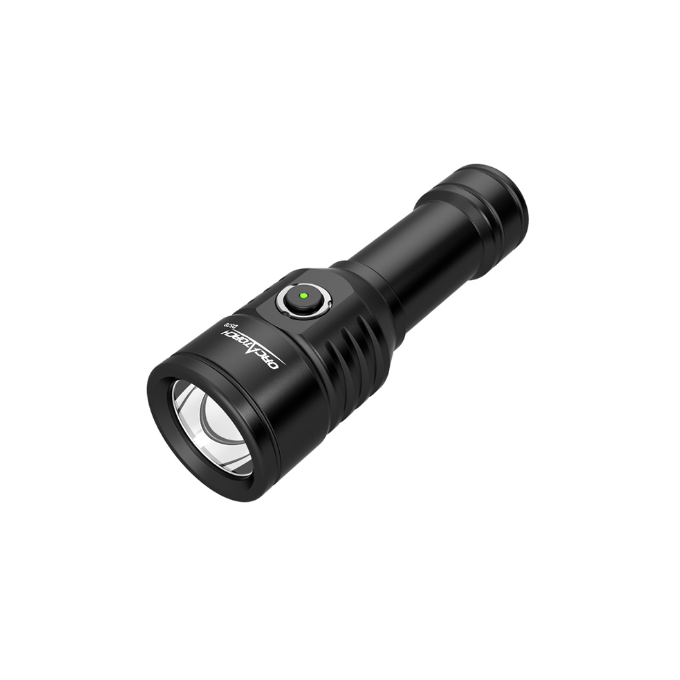 Latarka nurkowa OrcaTorch D570-RL – 1000 lm, ładowanie zewnętrzne (ładowarka 18650), akumulator 18650, głębokość 150 m