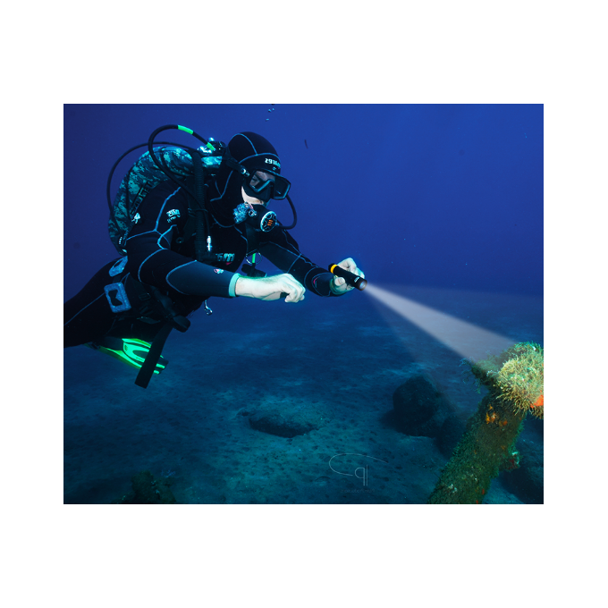 D700 generuje skupioną wiązkę 6°, zapewniając doskonałą widoczność w trudnych warunkach – na wrakach, w jaskiniach i podczas nocnych nurkowań. Mechaniczny przełącznik obrotowy gwarantuje pełną niezawodność nawet w rękawicach i eliminuje ryzyko przypadkowego uruchomienia pod wodą.