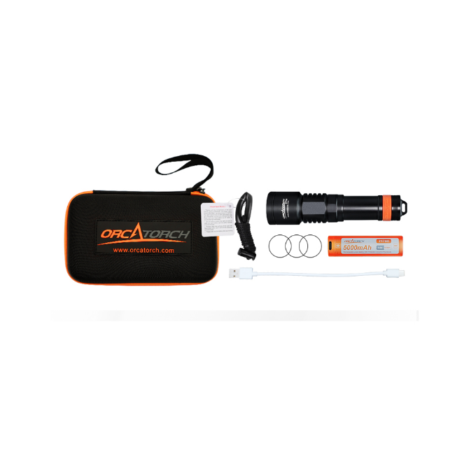 Latarka nurkowa OrcaTorch D700 – 1700 lm, USB-C w akumulatorze, akumulator 21700, głębokość 150 m