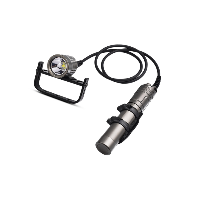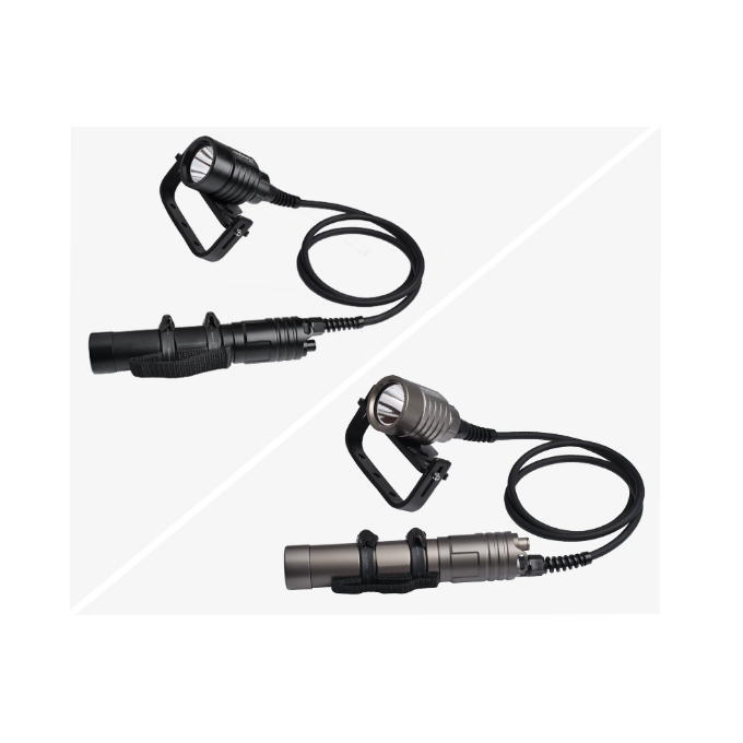 Latarka kanistrowa OrcaTorch D611 to zaawansowana latarka do nurkowań technicznych, jaskiniowych i wrakowych. Głowica o mocy 2400 lumenów połączona jest przewodem z kanistrem mieszczącym 2× akumulatory 26650, dzięki czemu w dłoni pozostaje lekka głowica, a zasilanie wygodnie mocuje się do uprzęży. Trzy tryby jasności, szczelny przełącznik magnetyczny oraz komplet zabezpieczeń elektronicznych zapewniają niezawodną pracę nawet podczas długich, wymagających nurkowań.