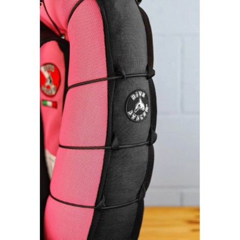 - Regulowana uprząż – miękkie pasy, aluminiowe D-ringi, podwójny backpad.
