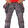 - dodatkowe zabezpieczenia z materiałów o podwyższonej odporności w strefach narażonych na przetarcia (kolana, krok, pośladki).