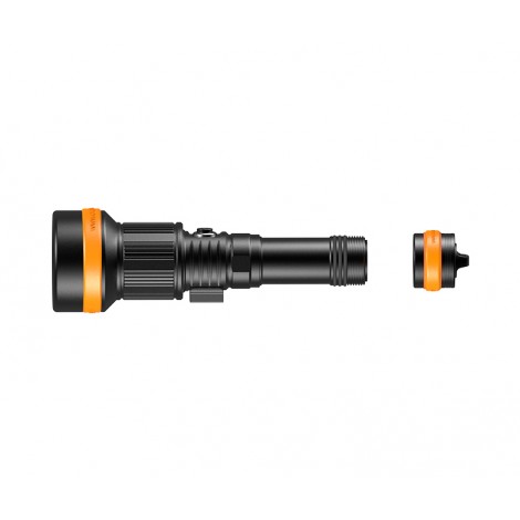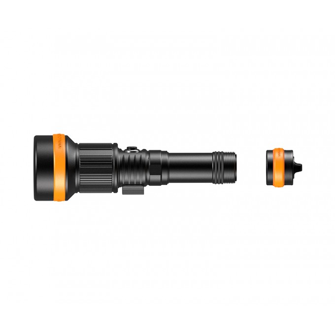 OrcaTorch ZD710 MK2 to wszechstronna latarka z regulowanym kątem wiązki od 4° do 72°, czterema poziomami jasności i szybkim trybem Turbo (1500 lm). Dzięki akumulatorowi 21700 5000 mAh z ładowaniem USB-C w akumulatorze oraz obudowie z aluminium A6061-T6 (twarda anoda), świetnie sprawdzi się w nurkowaniach nocnych, wrakowych, jaskiniowych i foto/wideo. Głębokość pracy do 150 m (IPX8).